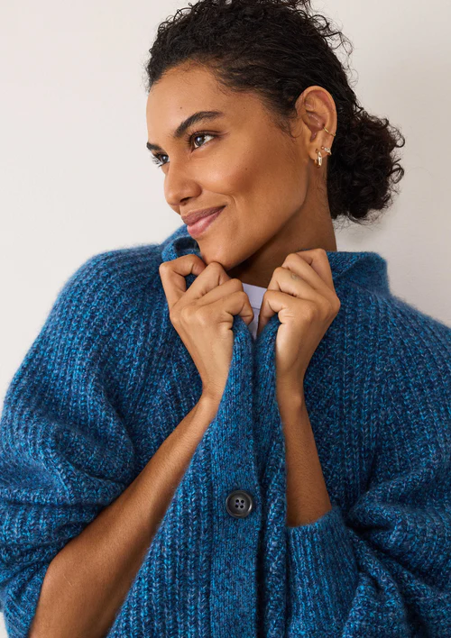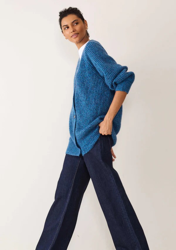 Elevate your knitwear collection with this Longline Silk-Cashmere Cardigan in Bonito Blue — a graceful blend of sumptuous cashmere and smooth silk, designed to drape beautifully. The elongated silhouette adds sophisticated coverage, while the airy, lightweight fabric makes it perfect for layering ... Read more all year round. The soft Bonito Blue hue brings a fresh, calming touch that works seamlessly over summer dresses or tailored trousers, making it a versatile wardrobe staple that balances elegance and relaxed comfort.