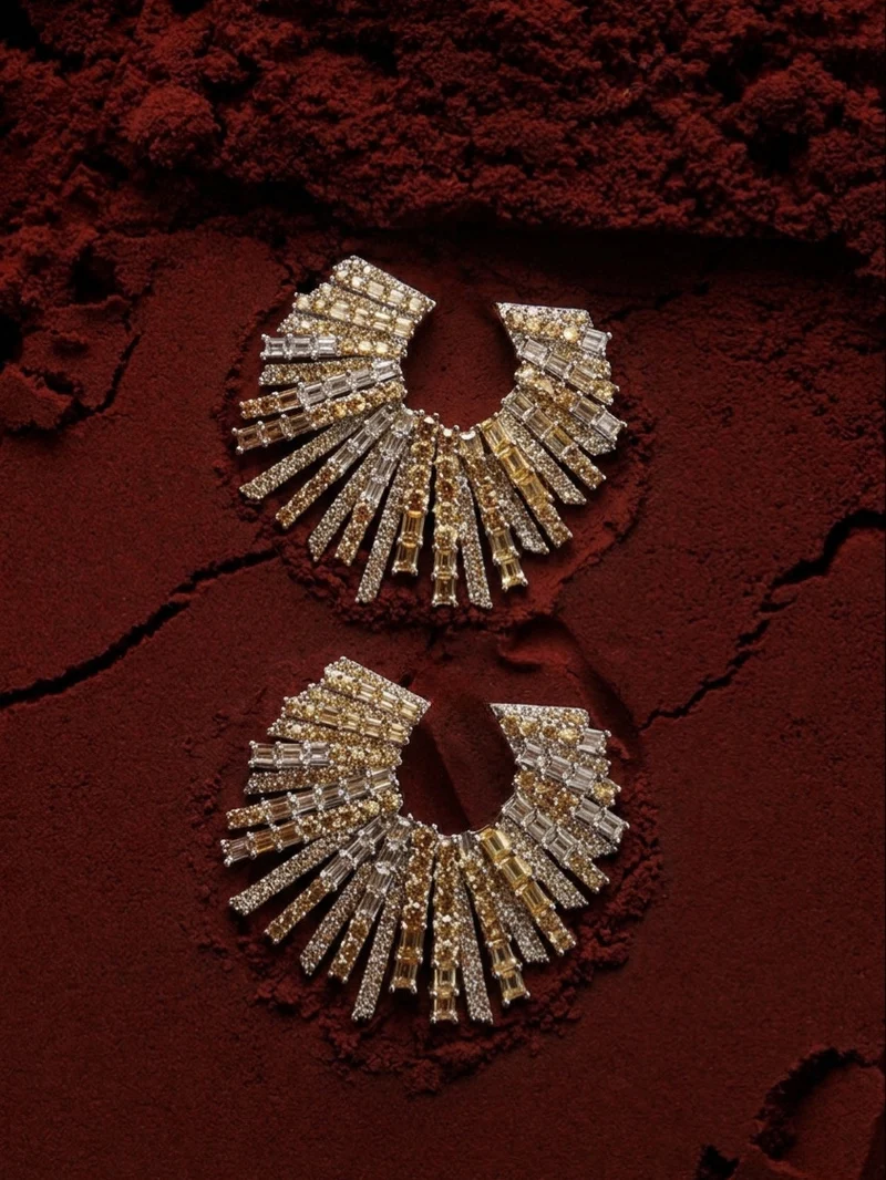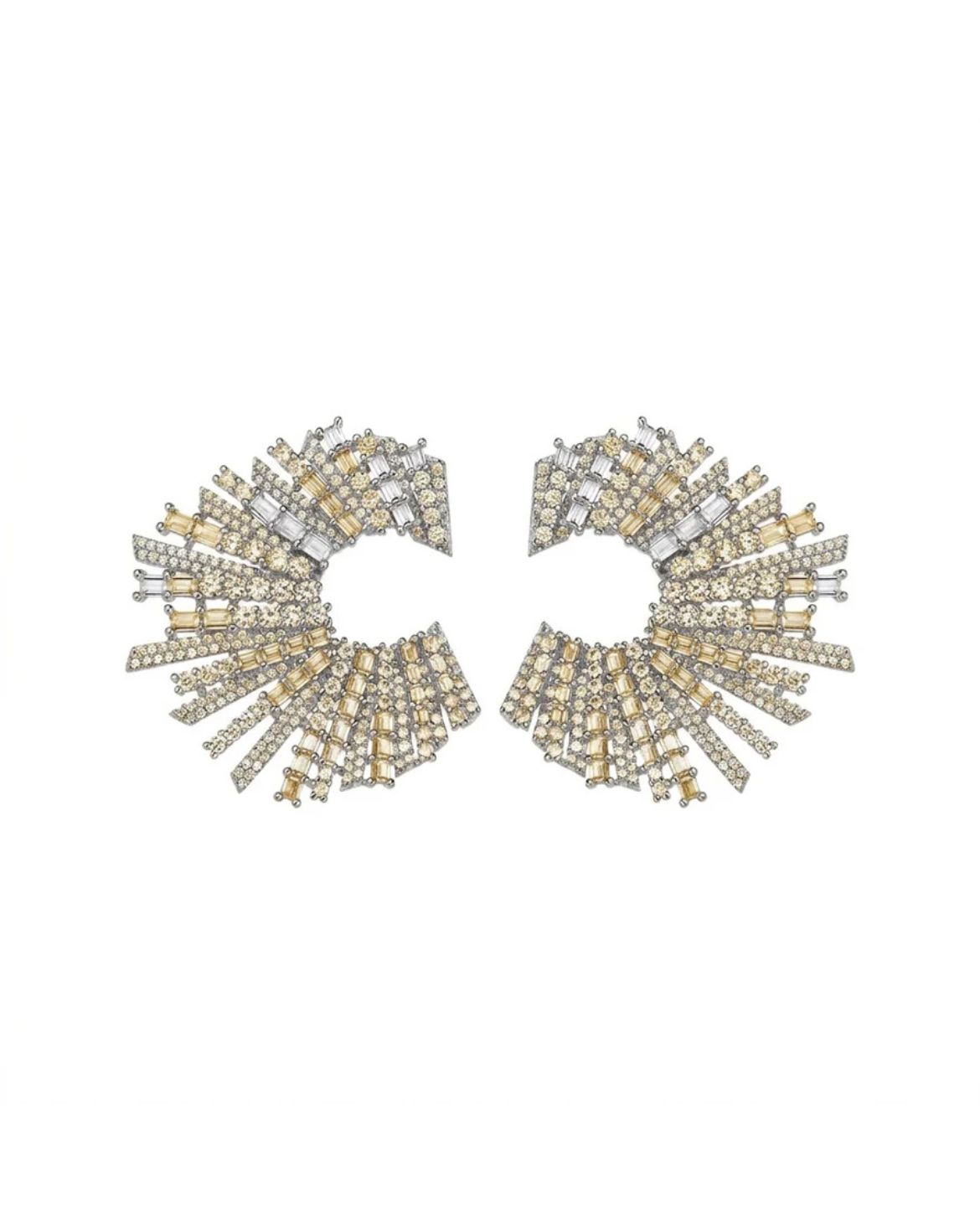 These stunning star-like earrings will make you shine by omitting strikingly powerful reflections of light. Part of the first and most iconic of TALITA's collection, they recall mythical journeys and meaningful connections. The choice of varying stone sizes and cut represents a myriad of minuscule ... Read more stars irradiating from the ear. To be worn both at night and during the day they are the perfect piece to always carry with you in order to enhance any look.