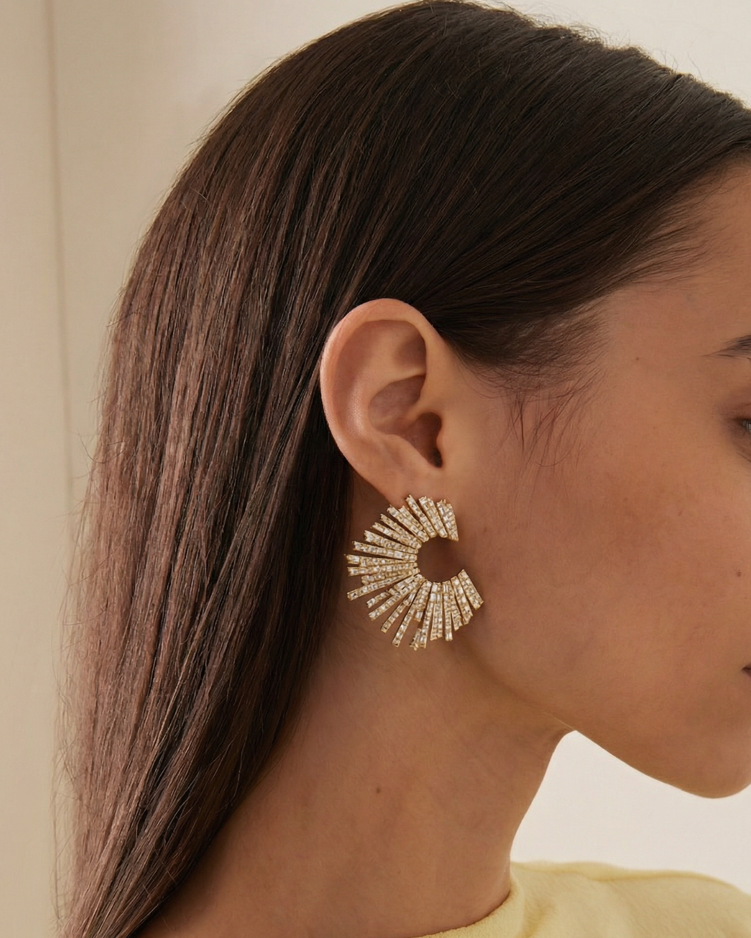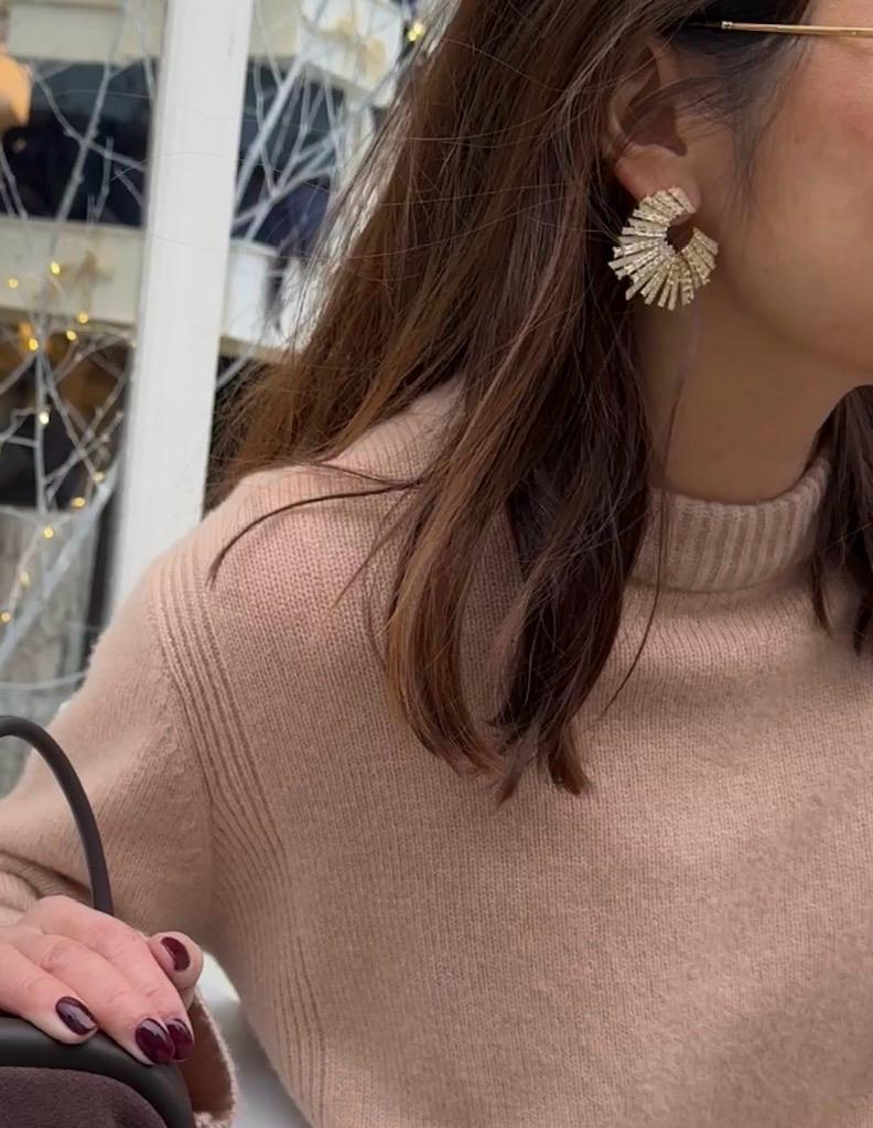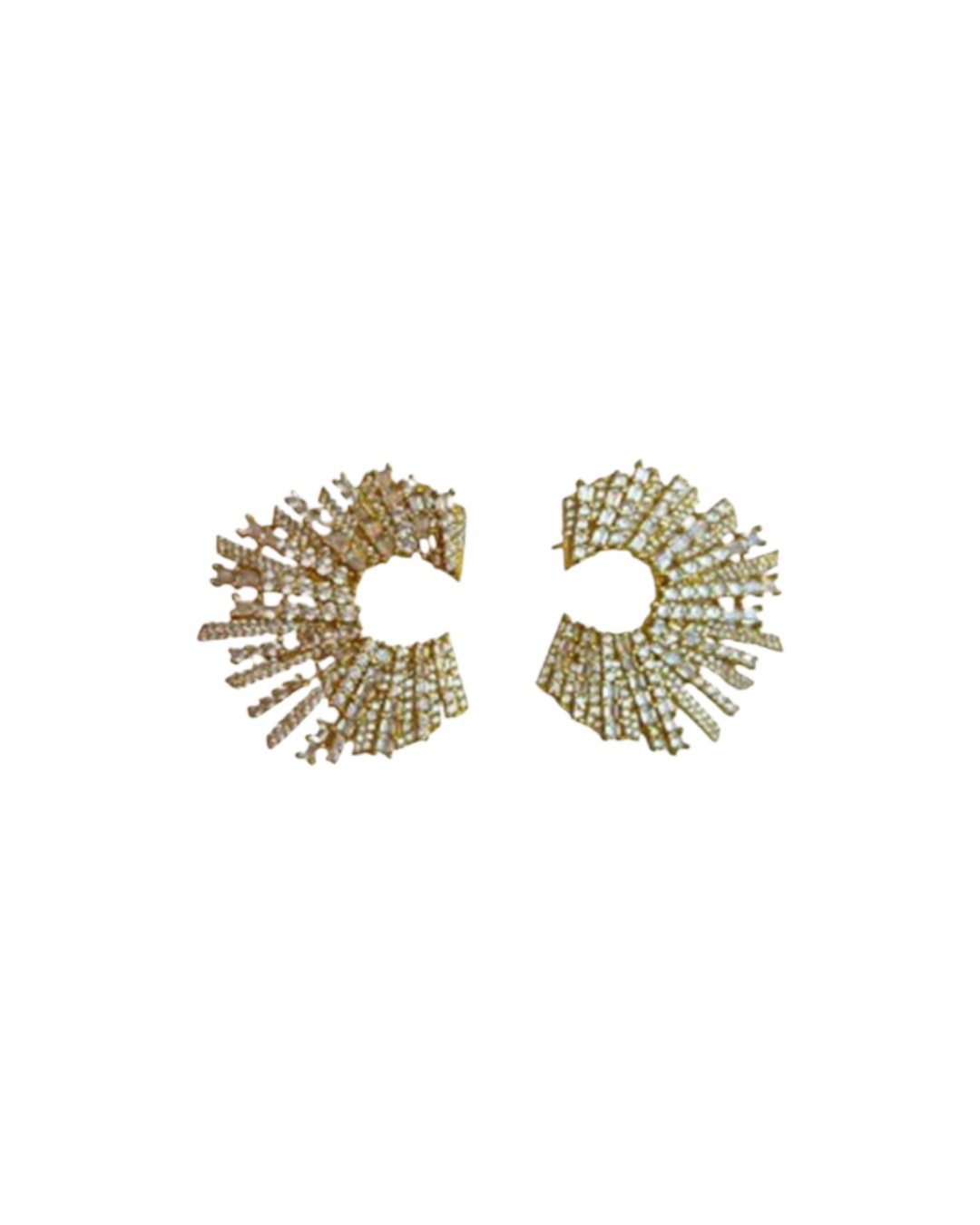 Elegant 18ct rose gold plated earrings with a starburst design, featuring varied stone sizes and cuts that catch the light beautifully, inspired by celestial journeys and perfect for day or evening wear. ... Read more