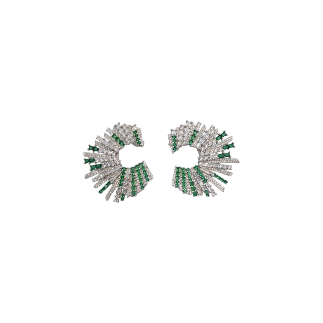 Illuminate your look with these Starstruck Earrings. Designed to capture light from every angle, these earrings feature a stunning constellation of green-toned crystals arranged in a modern, sculptural form. The radiant hues evoke celestial beauty, making them the perfect statement piece for evening ... Read more wear or special occasions. Elegant yet daring, they add a touch of starlit glamour to any outfit.