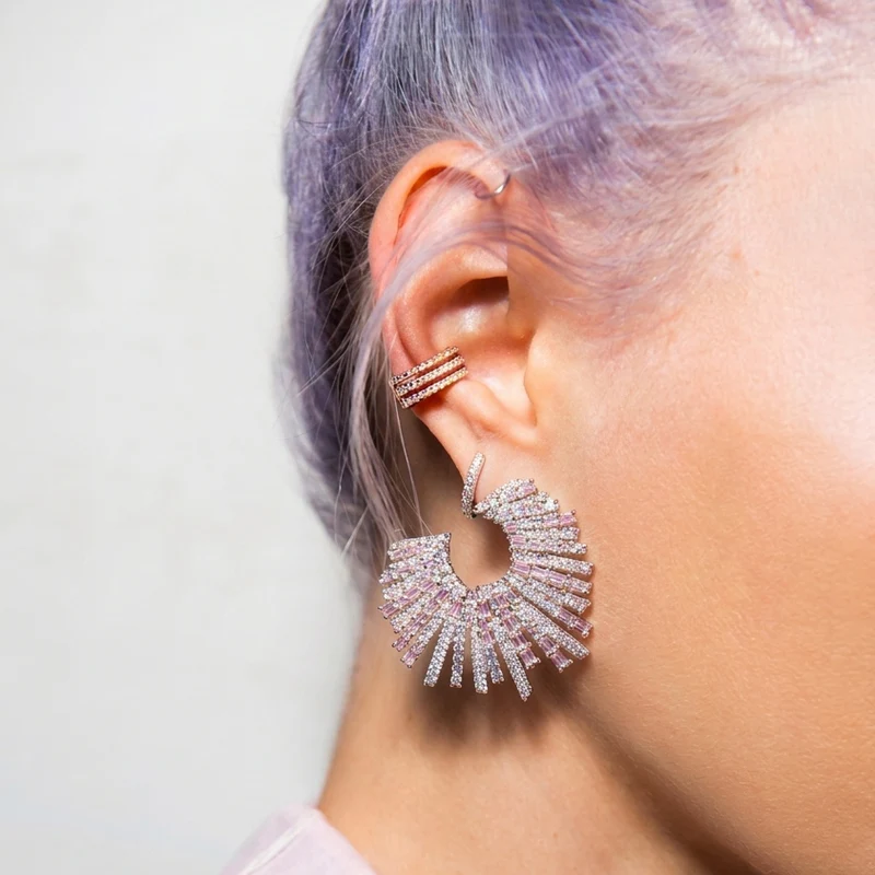 These stunning star-like earrings will make you shine by omitting strikingly powerful reflections of light. Part of the first and most iconic of TALITA's collection, they recall mythical journeys and meaningful connections. The choice of varying stone sizes and cut represents a myriad of minuscule ... stars irradiating from the ear. To be worn both at night and during the day they are the perfect piece to always carry with you in order to enhance any look.