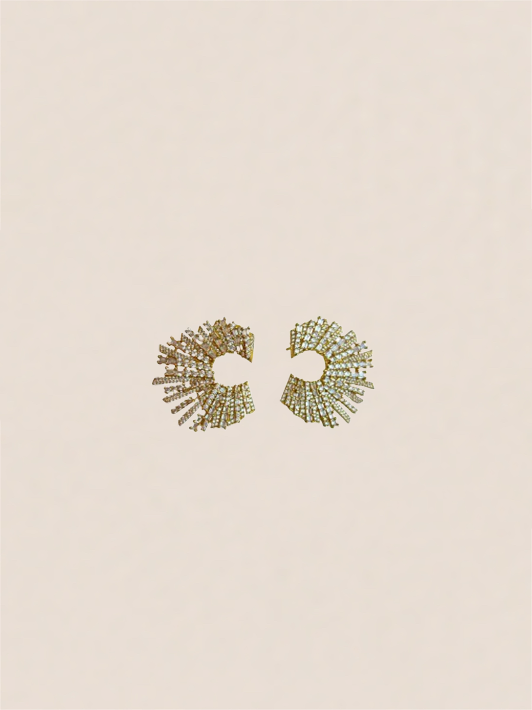 Elegant 18ct rose gold plated earrings with a starburst design, featuring varied stone sizes and cuts that catch the light beautifully, inspired by celestial journeys and perfect for day or evening wear. ... Read more