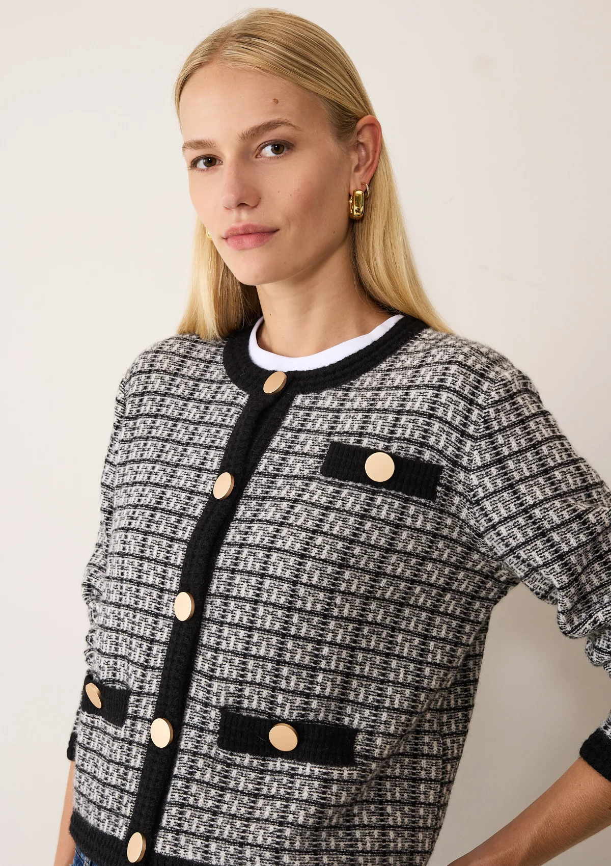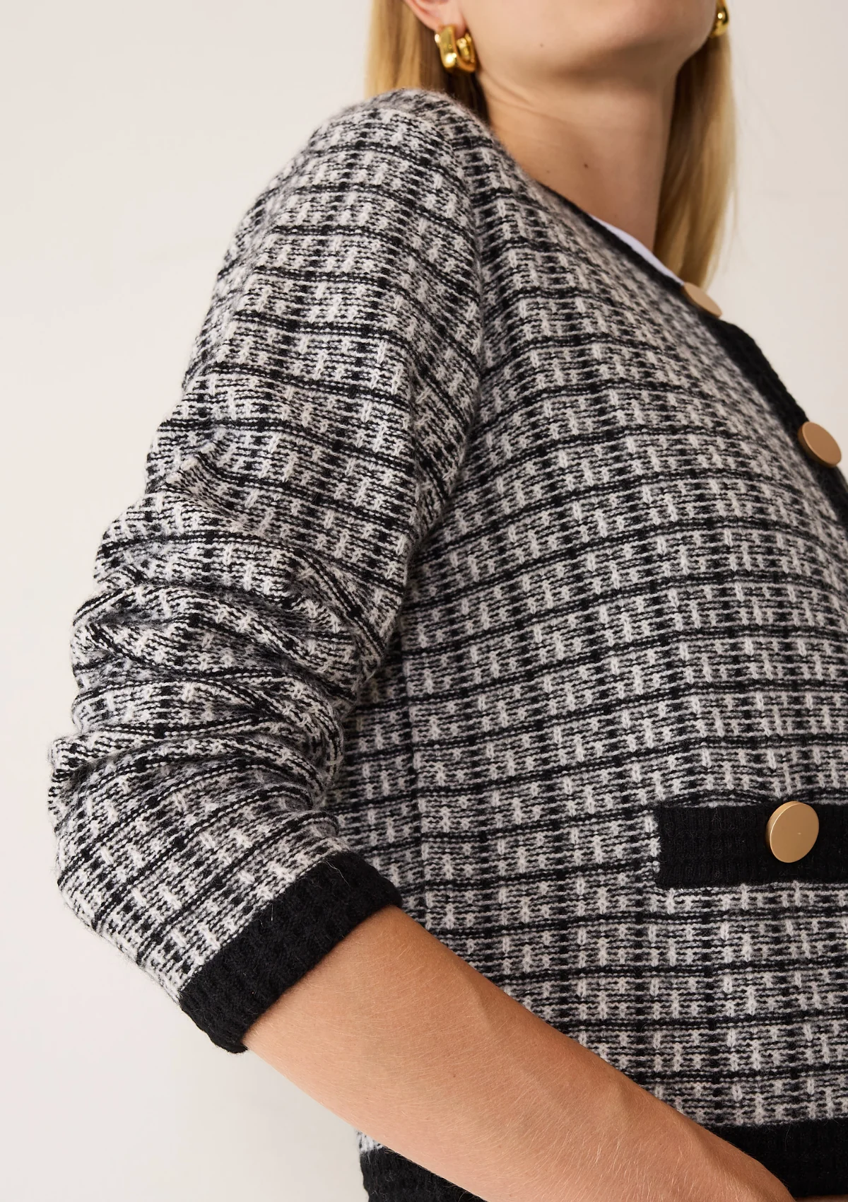 This textured check jacket is a classic in the making, a buy now, wear forever staple. Our chic knitted jacket can smarten up any outfit effortlessly. Inspired by classic French style, our version is knitted in soft and sumptuous Inner Mongolian cashmere and adorned with striking contrast trims and ... Read more gold buttons. Update your office wardrobe paired with wide legged trousers, shirting and heels or team with relaxed denim a t-shirt and Mary Jane shoes for an elegant weekend way to wear. Equally chic with a midi skirt or dress for smarter occasions or evenings out.