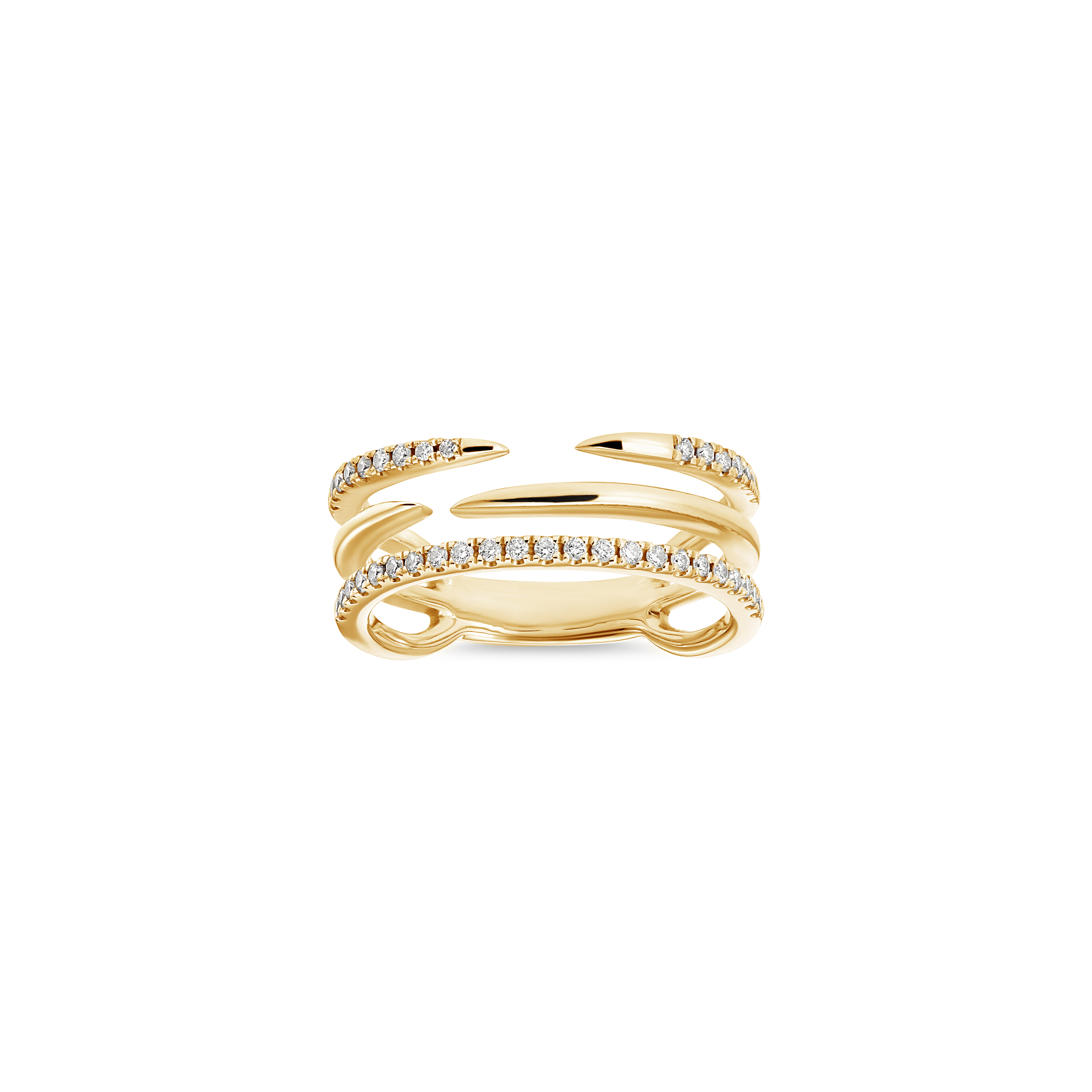 The Ray Ring gives you a bolder look for everyday dressing. Three mismatching rows of diamonds and open band creates a sleek and very trendy look, yet transcend trend. Also available in- Rose Gold and Yellow Gold ... Read more