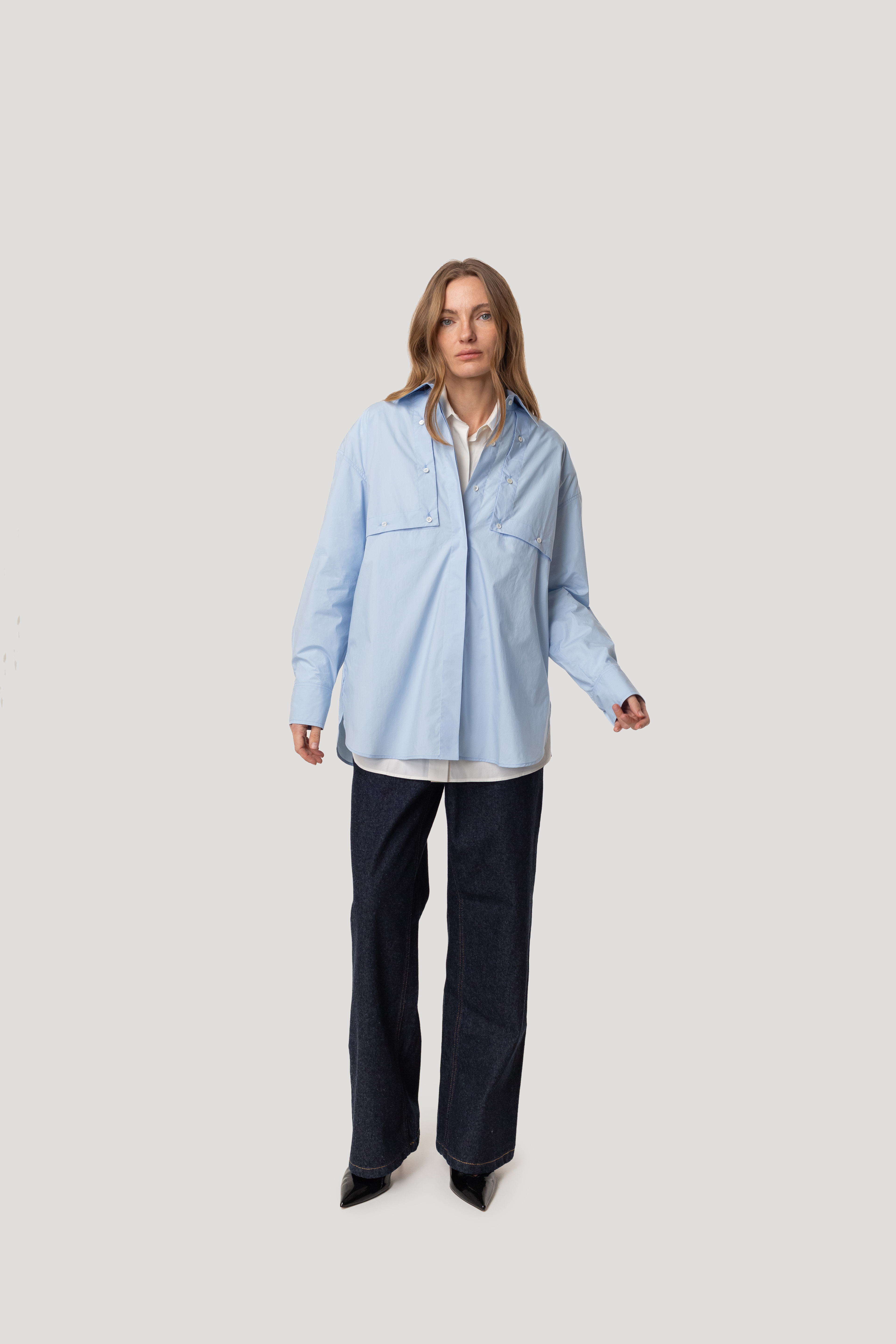 A light blue cotton shirt crafted from soft, breathable fabric for effortless everyday comfort. Mother-of-pearl buttons bring a refined touch, while the crisp light-blue tone adds a fresh and elevated feel to any look. A timeless, versatile wardrobe essential designed to offer ease, polish and ... Read more understated style.