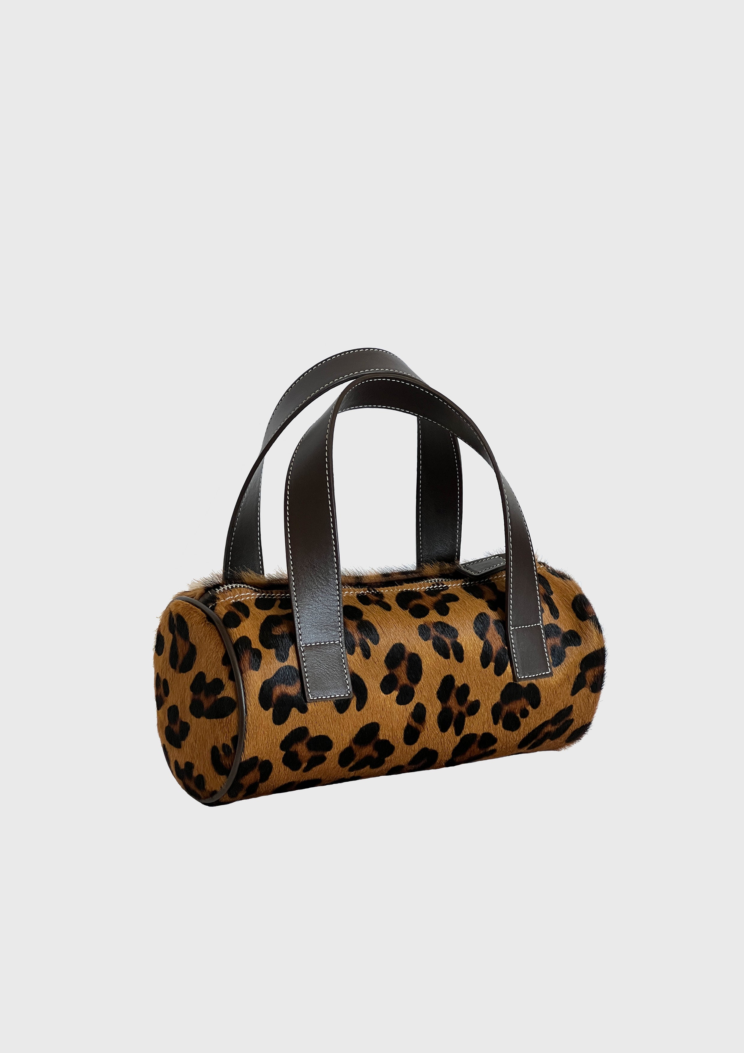 Dara Hamarneh Tube is a medium sized cylinder handbag in cheetah printed calf hair that comes with two leather handles making it an easy everyday handbag that fits all your everyday essentials. Small interior pocket, Dara Hamarneh initial branding. Height: 10 cm, Width: 25 cm, Depth: 10 cm. ... Read more Crossbody Strap Length: 100 cm, 2.5 cm wide.