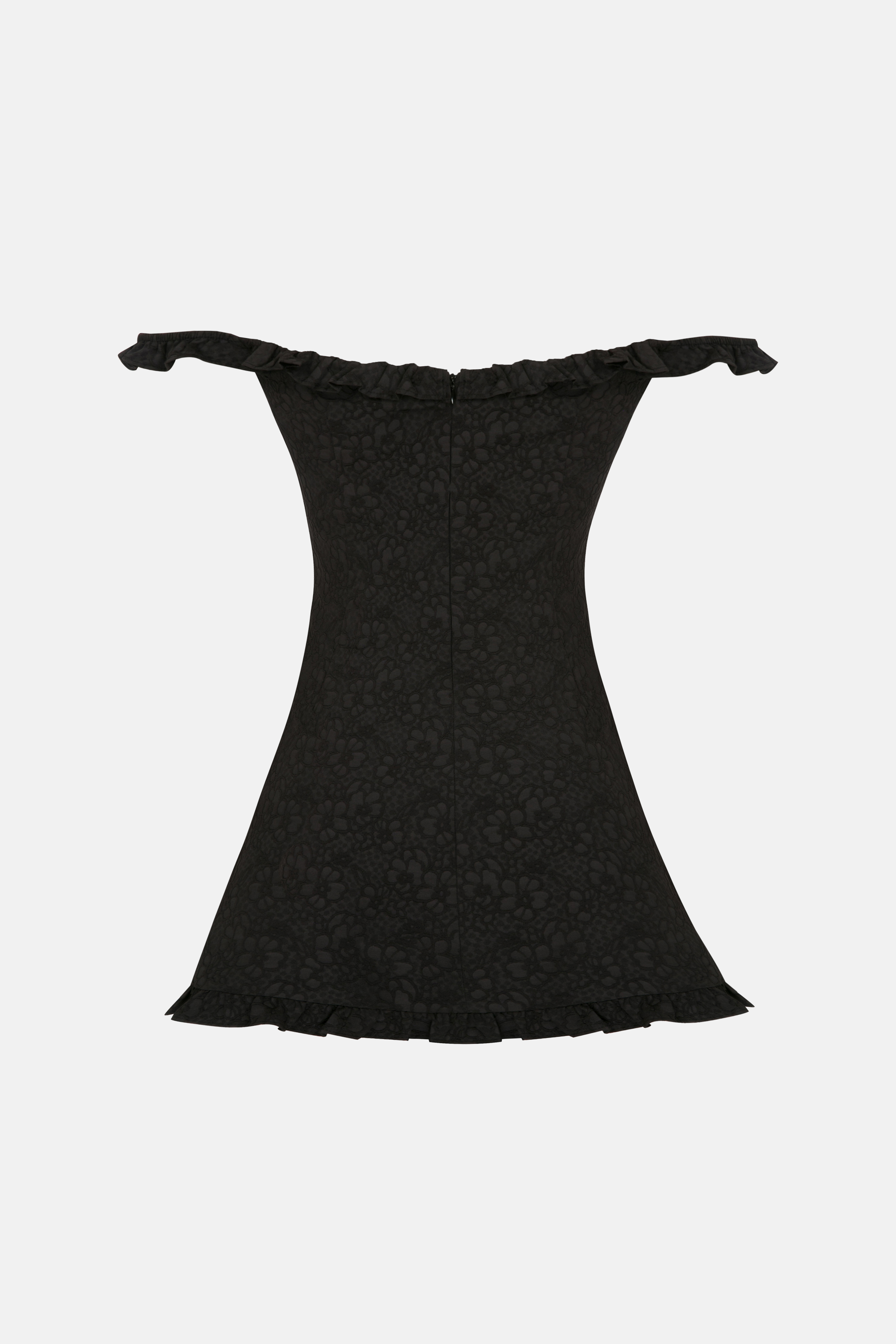 Radiate modern romance in the Wild Rose Dress in classic black—a mini silhouette that seamlessly blends playful detail with refined texture. Crafted in patterned seersucker fabric for subtle depth and movement, the dress features soft ruffle accents and elasticated sleeves that add effortless charm, ... Read more while an asymmetrical slit brings a hint of edge and elongation. Pair it with sleek ankle boots or bold strappy heels and minimal accessories for an elegant evening look that still whispers carefree spirit.