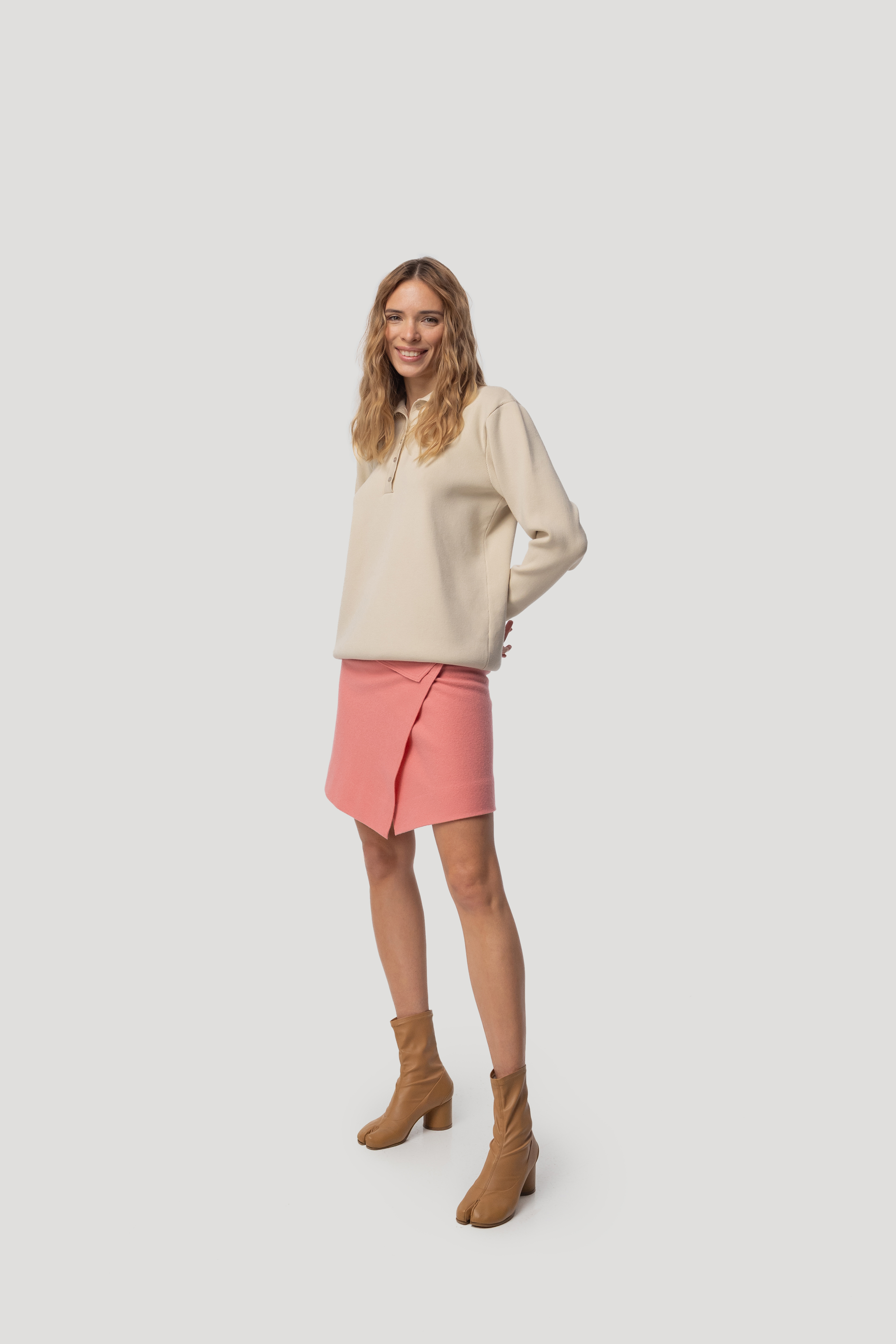 A versatile virgin wool multi size wrap skirt, handcrafted from a luxurious Italian wool blend, offers a perfect fit that adapts to your changing shape. The soft, breathable fabric ensures comfort and elegance, making it an essential addition to your wardrobe. Pair it with a matching top for a ... Read more cohesive, unforgettable look that exudes sophistication and style. It’s the perfect length—short enough to catch the eye, but just the right amount of chic for any occasion.We recommend you choosing size-up to your regular size as it fits small to size.