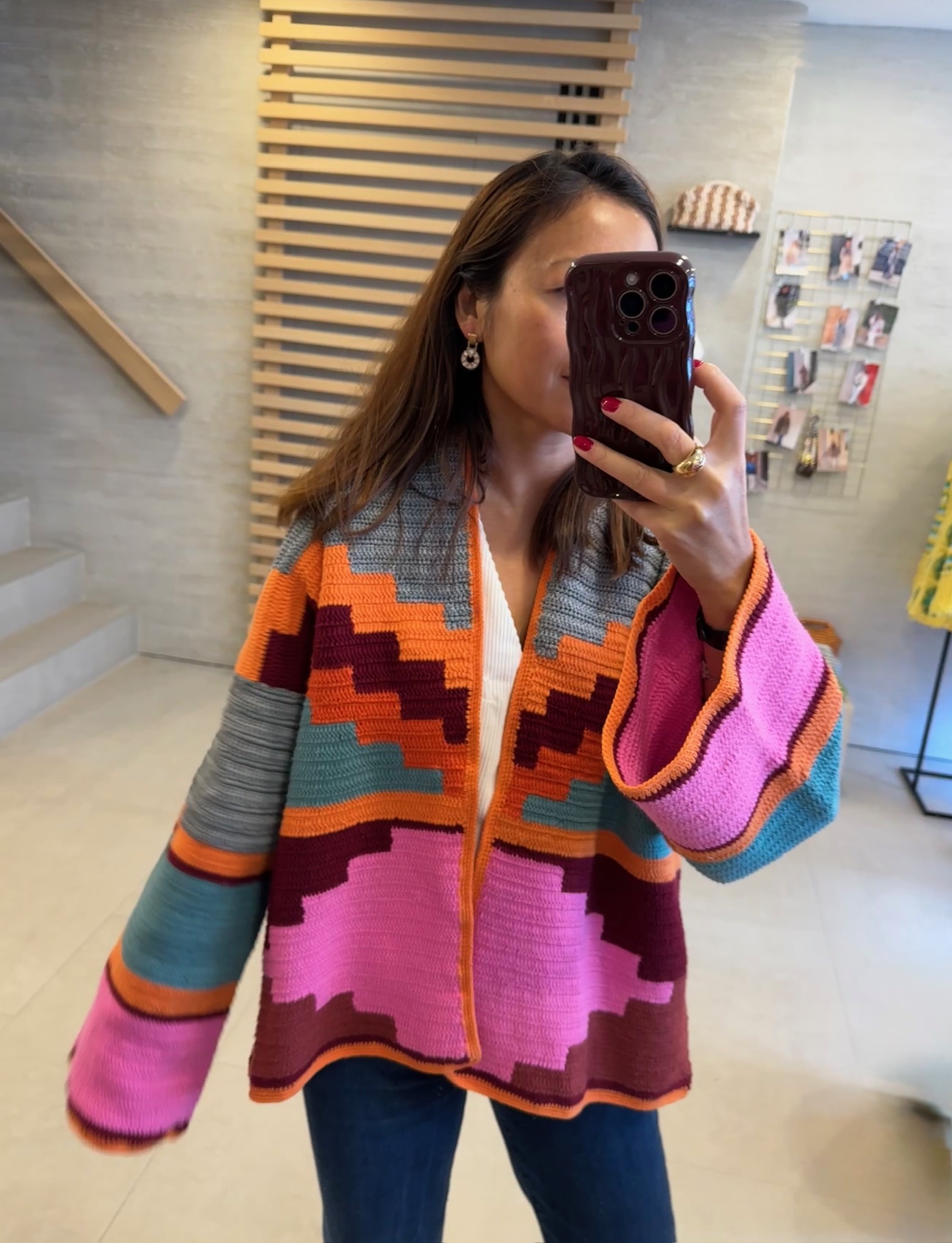 A handcrafted knit jacket made from premium Class A cotton and delicate silver silk threads, this vibrant multicolor piece blends artisanal texture with bold style. Hand-knitted in Lebanon with love, it brings playful charm and statement appeal to any outfit while celebrating traditional ... Read more craftsmanship.